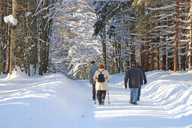 Mittelschwere Tour auf durchgehend geräumten oder gewalzten Winterwanderwegen.