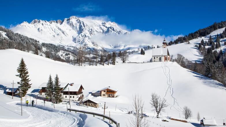 Winterwandern vom Dorf Dienten zur Jausenstation Almhäusl