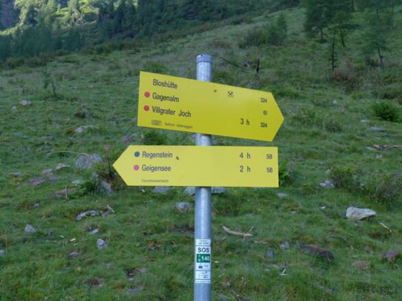 Vom Taxi-Wendeplatz taleinwärts über einen gut bezeichneten Steig zur ersten Steilstufe, die links des Wasserfalls über den "Fenstersteig" erstiegen wird. In diesem Bereich einige felsige Passagen, die im Abstieg (besonders bei Nässe) Vorsicht erfordern. Anschließend eben, dann wieder leicht ansteigend zu einer felsigen Geländestufe, die schräg nach rechts ansteigend in einer Schleife umgangen wird. Über teils schrofige Wegstrecke zu der Wegkreuzung, rechts zum Pumpersee und links in wenigen Minuten zur unbewirtshafteten Glaurithütte am Geigensee.