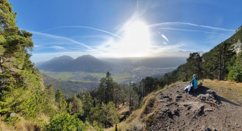 Bevor du der Beschilderung in Richtung Kramersteig hinauf zum Königsstand folgst, nutze kurz die Gelegenheit das Panorama zu genießen und durchzuatmen.