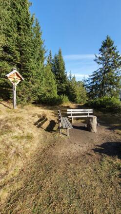 Sobald du die Kreuzung zur Forststraße erreichst, biege rechts ab und genieße von nun an die kontinuierliche Steigung. Die knapp 100 Höhenmeter zur St. Martinshütte sind schnell gemeistert.