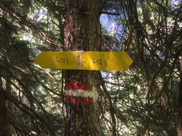 Über den Weg Nr. 412a,den sogenannten Schattseitweg kann man den Rückweg antreten, wenn man nicht den gleichen Weg zurückgehen möchte. Nach ungefähr einer halben Stunde findet man rechts an einem Baum ein Holzschild, das einen nicht markierten Weg in den Stoißengraben anzeigt. Der gut sichtbare Pfad führt zuerst durch Wald und mündet dann in einen Forstweg, auf dem man entlang vom Buchweißbach wieder raus aus dem Stoißengraben zum Parkplatz kommt.