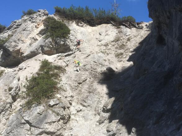 Der Steig von der Steinalm zur Peter Wiechenthaler Hütte ist zwar versichert, aber schmal und ausgesetzt. Vorsicht ist geboten.