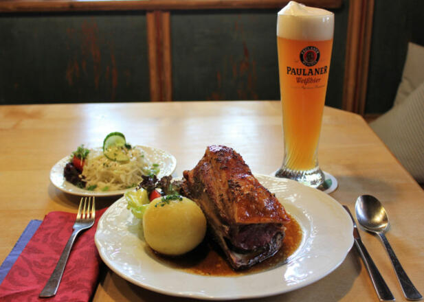 Dazu passend Biere der Münchner Traditionsbrauerei"Paulaner" (vom Fass bzw. aus der Flasche) sowie gepflegte Weine.
