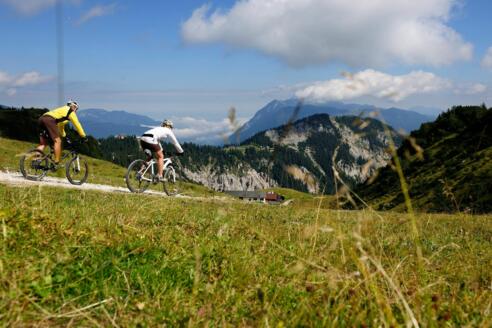 Wir starten am Olympia Skistadion in Garmisch-Partenkirchen über die Wildenauer Straße bis zur Mittenwalder Straße. Dort biegen wir links ab, folgen der B2 bis zur Abzweigung Historische Ludwigstraße. Dort biegen wir scharf rechts ab in die Gsteigstraße. Diese führt steil bergauf. Vorbei an der Staatlichen Vogelschutzwarte erreichen wir nach einer Flachpassage ein Wegdreieck. Dort benützen wir den rechten Abzweig abwärts zur B2 und folgen dem Radweg nach links, über Kaltenbrunn und Gerold bis Klais. Von der höchsten Schnellzug-Station Deutschlands fahren wir am Gasthof Post vorbei und folgen der Mautstraße (für Radfahrer kostenlos) in Richtung Elmau. Nach einem Anstieg öffnet sich vor uns das Elmauer Tal. Am Schloss Kranzbach vorbei, beim nächsten Anstieg biegen wir rechts auf die Schotterstraße ab und erreichen nach kurzer Fahrt das Schloss Elmau. Wir fahren weiter bis zum Wanderparkplatz in der Elmau. Von hier auf der guten Forststraße in Richtung Wettersteinalm/Schachen halten. Zuerst moderat ansteigend, dann jedoch immer steiler werdend, erreichen wir nach einem Flachstück eine Wegegabelung. Dort links haltend folgen wir dem Hauptweg. Am Ende der guten Forststraße wird der Weg nun etwas holpriger, bis wir bei einem Gatter an eine weitere Wegegabelung stoßen. Links abzweigend erreichen wir in ca. 5 min. die Wetterstein Alm auf 1464 m. Am gleichen Abzweig führt rechts der Königsweg zum Schachen hinauf. Auf dem Weg dorthin haben wir herrliche Ausblicke auf den Schachensee und passieren weiter oben den Botanischen Alpengarten, bevor wir das Bergschloss König Ludwig des II. erreichen. Interessierte sollten unbedingt eine Schlossführung einplanen. Auskunft im Schachenhaus. Außerdem empfiehlt es sich, ca. 5 Minuten weiter zum Aussichtspunkt zu gehen, um die grandiosen Ausblicke hinunter auf das Reintal und das Zugspitz- und Wettersteinmassiv zu genießen. Der Weg zurück nach Garmisch-Partenkirchen erfolgt auf der gleichen Strecke.