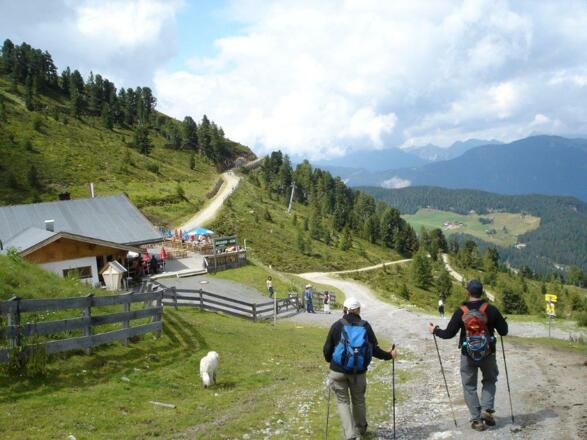Von dort gibt es zwei Möglichkeiten: Entweder man folgt dem breiten Fahrweg, der über die Kühtaile Alm zur Hochoetzt Bergstation führt. Oder aber man folgt einem Fußweg, der etwas oberhalb davon einen Bergrücken umrundet. Auf der anderen Seite geht es entlang einer Pistenschneise flach weiter anch Süden und oberhalb an der Hochoetz Bergstation vorbei. Zuletzt einem breiten Fahrweg weiter nach Süden folgend gelangt man zur schön gelegenen Bielefelder Hütte.